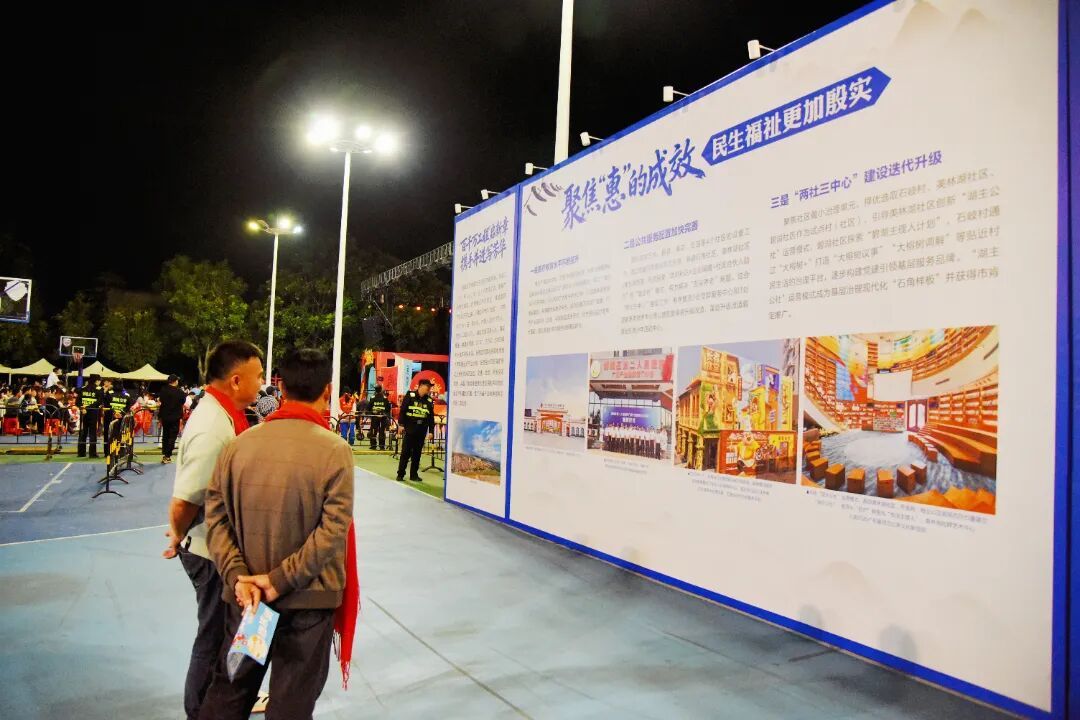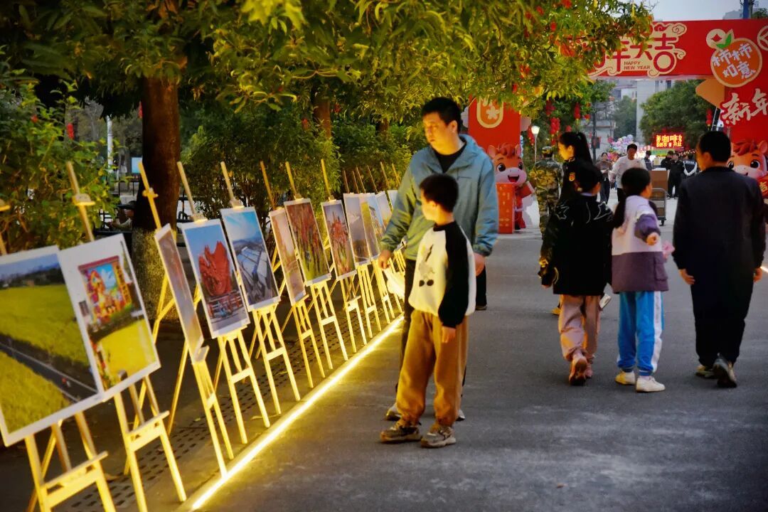 晚会现场同步竖立“百千万工程”效果展示区、公益摊位及石角惬心影相展,让住户不雅看精彩上演的共事,也能直不雅感受“百千万工程”给家乡带来的发展硕果。带着孩子前来不雅看的祁女士暗示:“十分干预,年味富余,能感受到石角东说念主对生涯的可爱和石角镇高超的发展势头。”