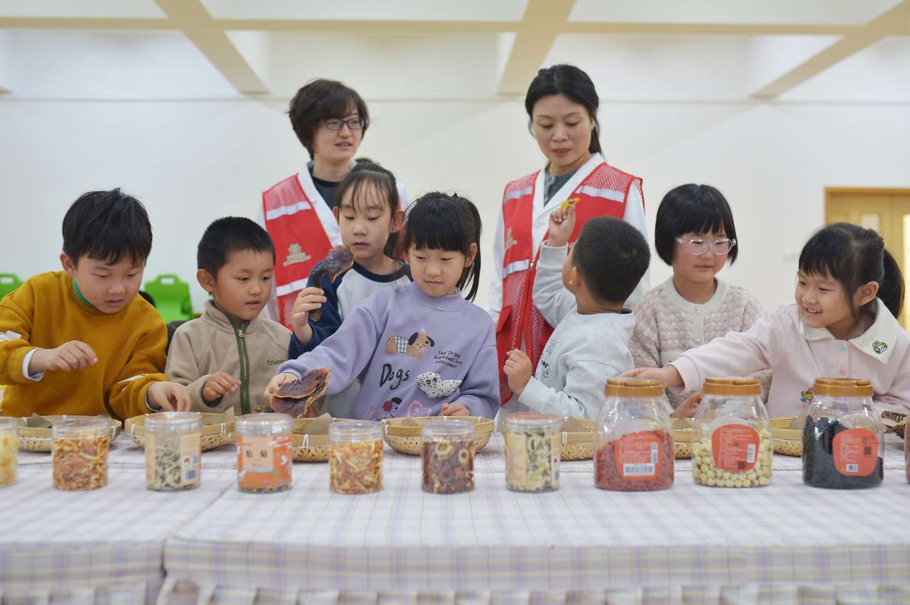 3月17日,在山东省青岛市青岛市市北区桦川路幼儿园开展的“神奇中草药”主题举止上,小一又友们在学习辨识中药。