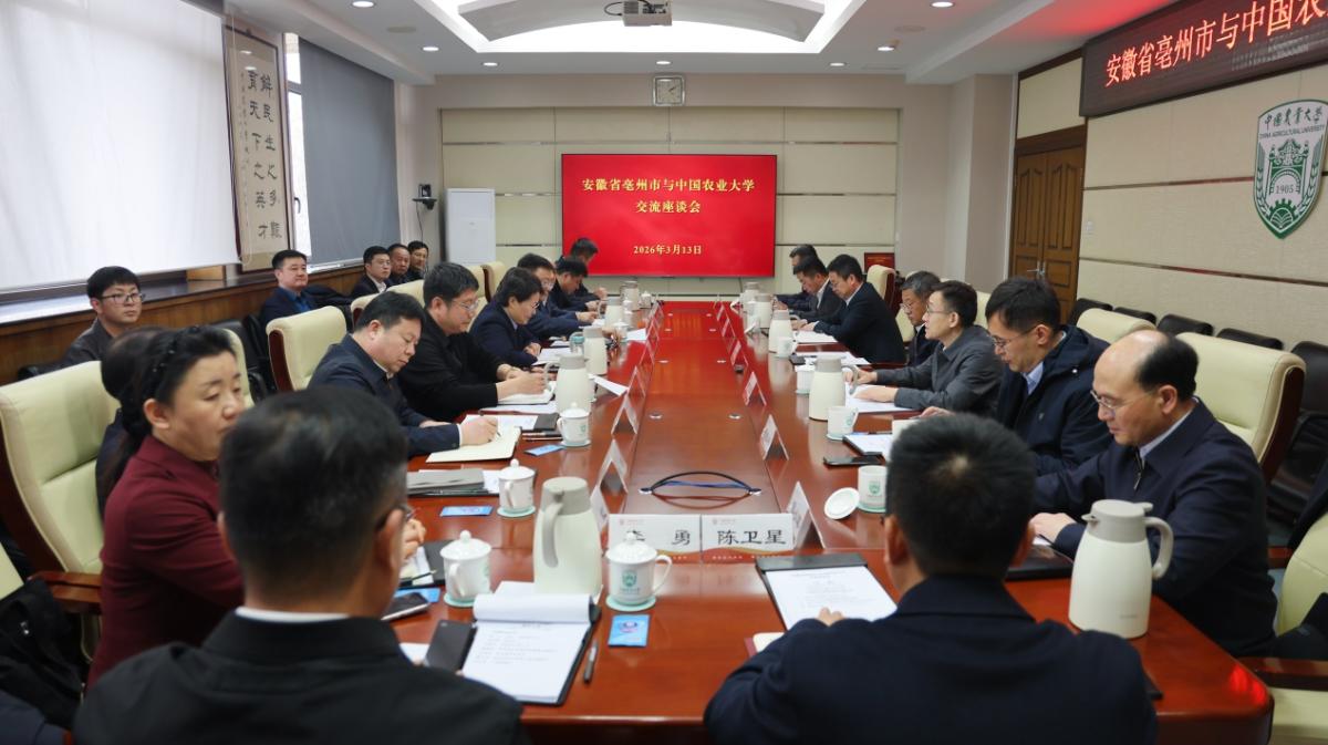3月13日下昼,安徽省亳州市委文告秦凤玉率队到访中国农业大学,两边围绕深化校地配合进行疏浚漫谈。中国农业大学校长陈卫出席茶话会,副校长田见晖主抓会议。