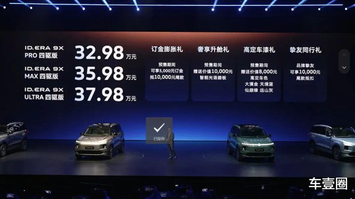 日前,备受期待的上汽各人ID. ERA 9X正经开启预售,3款车型,预售价区间为32.98-37.98万元。