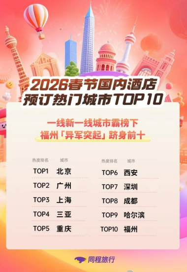 广州手脚省会城市,以传统迎春花市和当代烟花汇演迷惑大批搭客,春节机票预订热度位列寰宇前五。同程旅行的数据描摹出2026年广东春节旅游阛阓的火热图景并未停步于广深等一线城市。清远市的弘扬尤为凸起,春节旅社预订热度同比高潮342%,这一涨幅在寰宇城市中排行第六。潮汕地区雷同弘扬拉风,揭阳市和汕头市春节旅社预订热度分袂同比增长337%和212%,成为春节旅游阛阓的黑马。