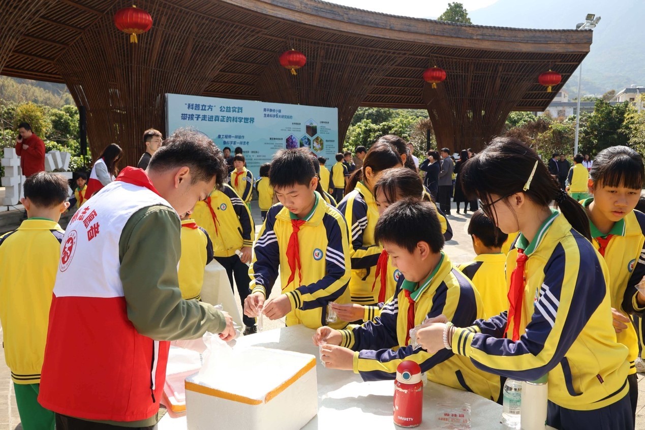 尤其引东说念主扎眼的是,100名小学目生组参与互动。他们在身穿志愿者服装的责任主说念主员的提醒下,亲手操作器材,不雅察奇妙答允,阵阵惊奇与兴盛不休响起。这些责任主说念主员中,很多是珠江健康的党员志愿者,他们的变装不仅是守护递次,更是向前进修旨趣、换取想考,试图在孩子们心中播下更深的科学种子。