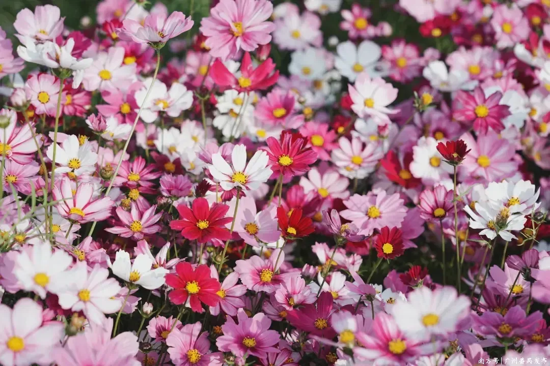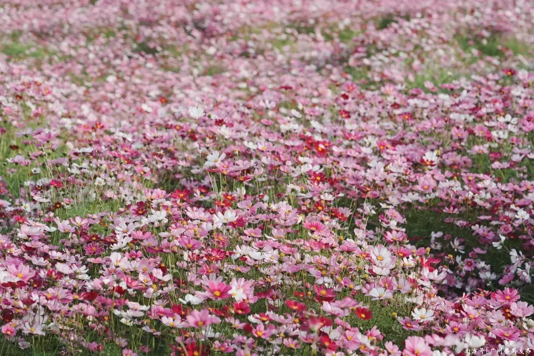 市桥德兴足球场周围,由闲置地援救出的8000普通米格桑花海碰巧盛花期。粉白、紫红的花朵交汇繁芜,汇成一派温存的彩色海洋。微风拂过,花浪轻涌,诱导了繁多市民前来拍照打卡。