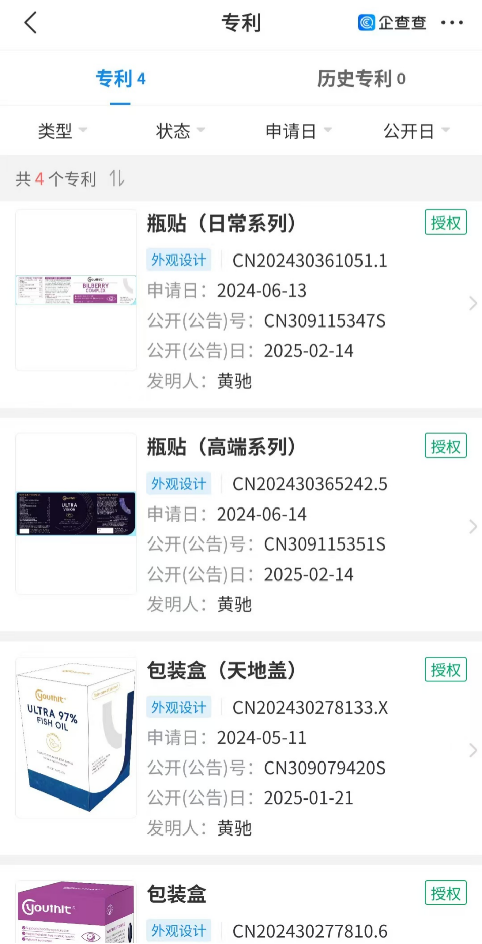 有兴趣兴趣的是,这家公司唯一4项专利,还全是外不雅设想磋商的,跟食物、医疗半毛钱磋商莫得。