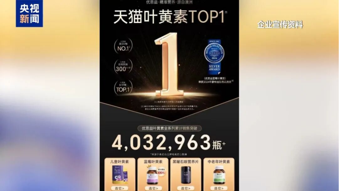 堪称“源自澳洲、自然健康”,长年霸榜天猫、抖音叶黄素品类销量第一,全系列狂卖400多万瓶、单瓶售价近300元,这即是曾被多数滥用者追捧的优念念益(YOUTHIT)。