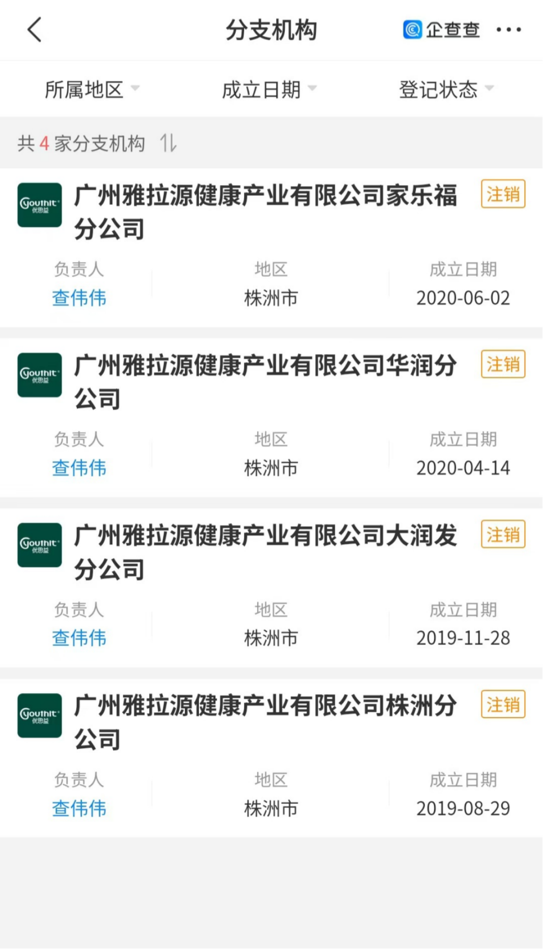 而他幕后真是凿运营者是广州雅拉源健康产业有限公司,企查查露出,这家公司是2016年4月才缔造的,注册成本8000万,法定代表东说念主叫黄驰。