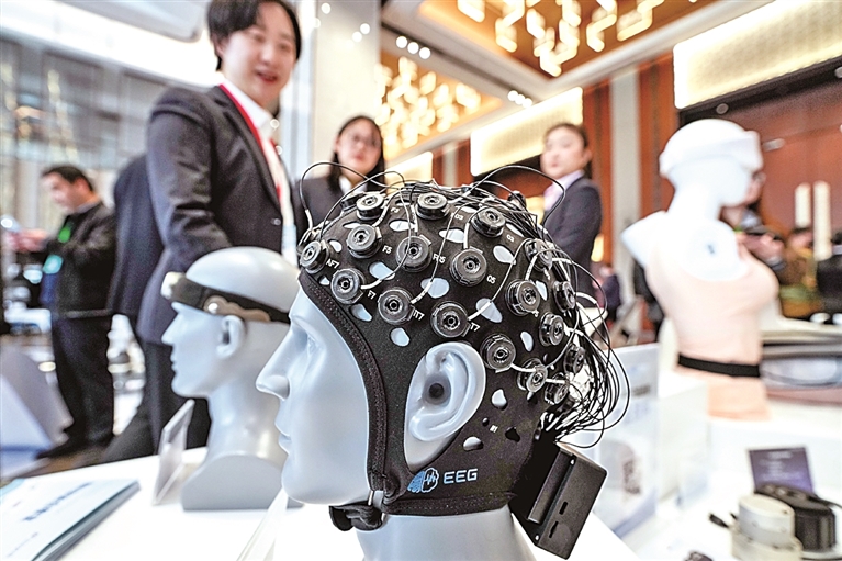 脑机接口智能装备眩惑不雅众前来参不雅。新华社发