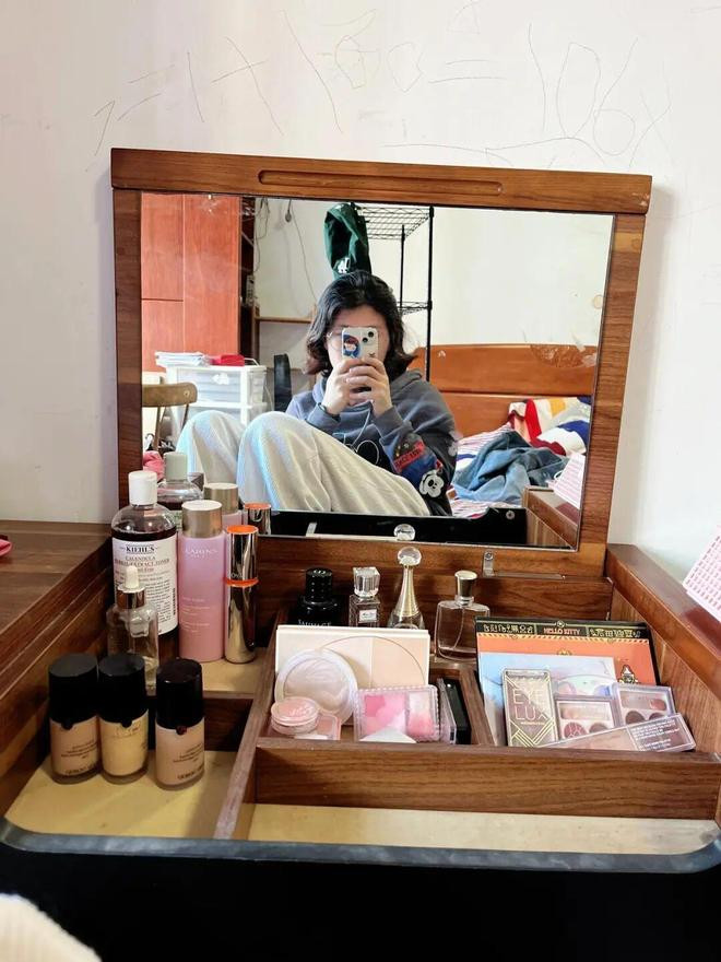 2)思二次诓骗化妆桌面空间,但每次化妆时都需要把桌面物品打理掉,那叫一个贫寒。